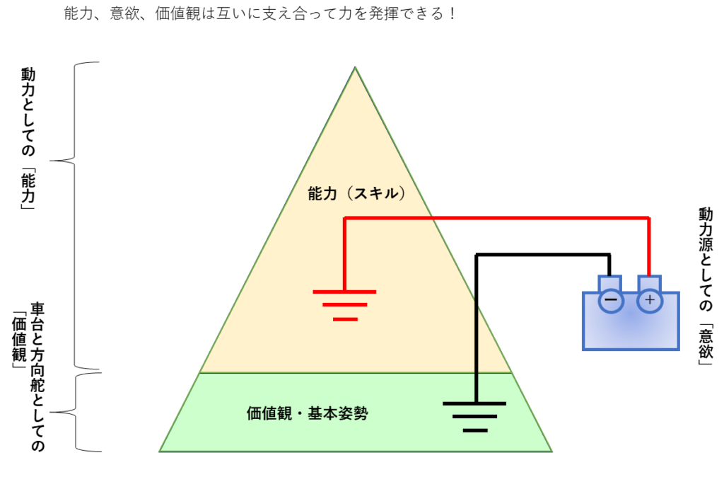 - 能力(スキル)は成果を生む動力(エンジン、モーター)
