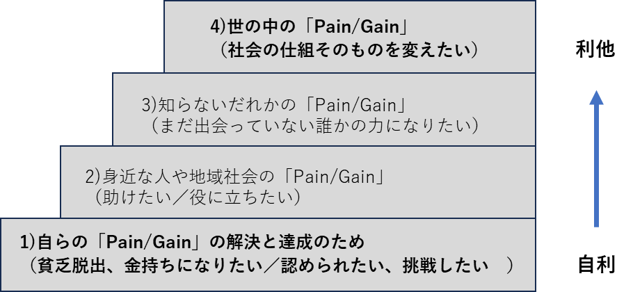 マズローの5段階説に似せた「経営者の自利利他4段階」。あなたは今、どの段階か。
